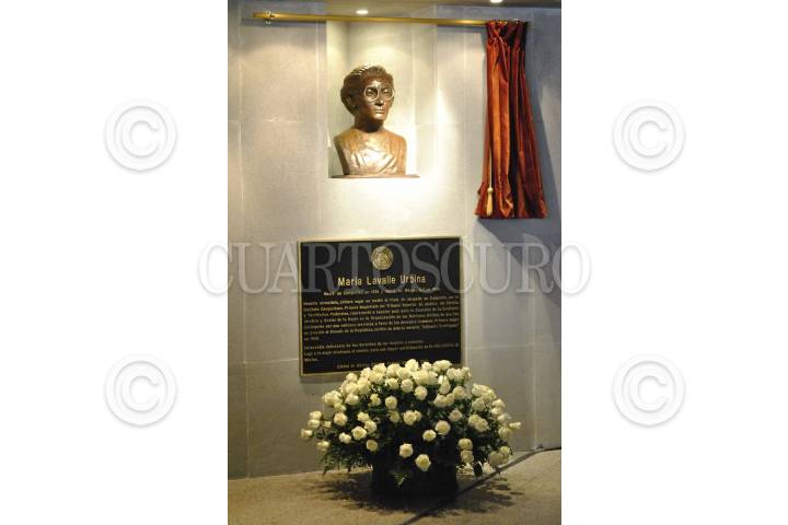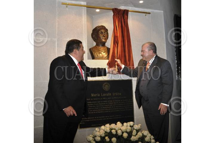 MÉXICO, D.F., 05MARZO2013.- El presidente del Tribunal Superior de Justicia del Distrito Federal, magistrado Edgar Elías Azar, y el gobernador de Campeche Fernando Ortega Bernés develaron un busto María Lavalle Urbina, quien fuera la primera magistrada en la historia del órgano jurisdiccional, y que fue colocado a la entrada del auditorio que lleva su nombre. Posteriormente, recorrieron la Sala de Presidentes donde se encuentran los retratos de los titulares del tribunal capitalino. FOTO: CUARTOCURO.COM