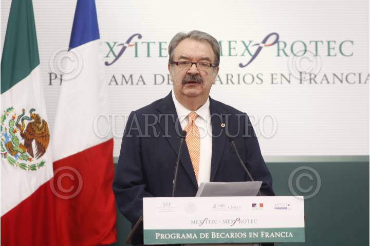 MÉXICO, D.F., 24JULIO2014.- Fernando Serrano Migallon, subsecretario de educación superior de la SEP, durante la ceremonia para entregar las becas a los alumnos que se irán a estudiar a Francia. FOTO: MOISÉS PABLO /CUARTOSCURO.COM