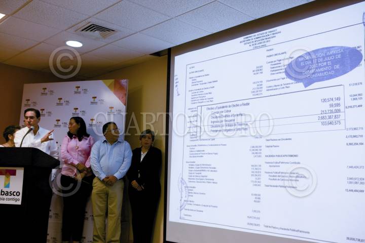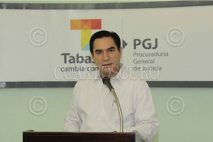 VILLAHERMOSA, TABASCO, 10DICIEMBRE2013.- Fernando Valenzuela Pernas, procurador general de justicia local, en compañía de servidores públicos de la misma dependencia ofreció una rueda de prensa en la sala audiovisual del SEMEFO. Ahí informo sobre el caso del ex gobernador Andrés Granier Melo, a quien se le consigno una nueva averiguación previa y se libero la orden de aprehensión por el delito de asociación en pandilla y por el desvío de recursos estatales por nueve mil millones de pesos, incluso detectaron que hubieron meses que retiraban hasta 500 millones de pesos en efectivo. FOTO: MARCO POLO GUZMÁN HERNÁNDEZ /CUARTOSCURO.COM
