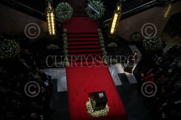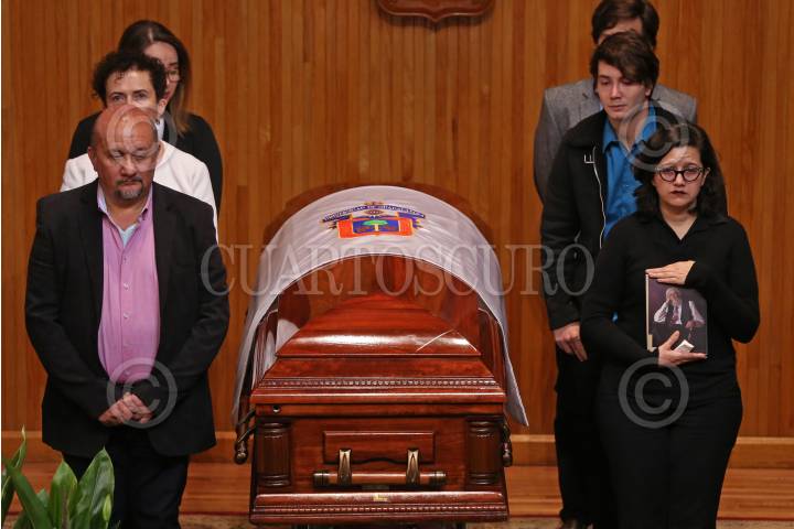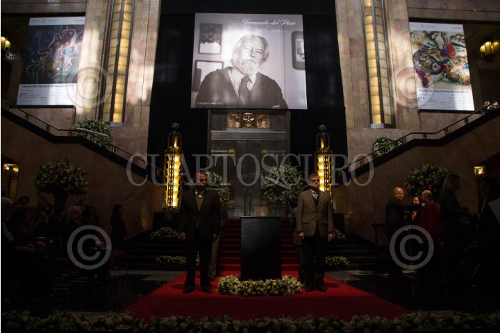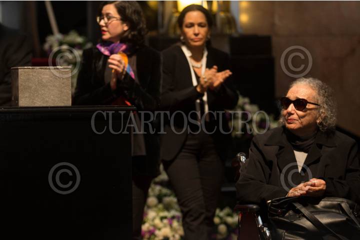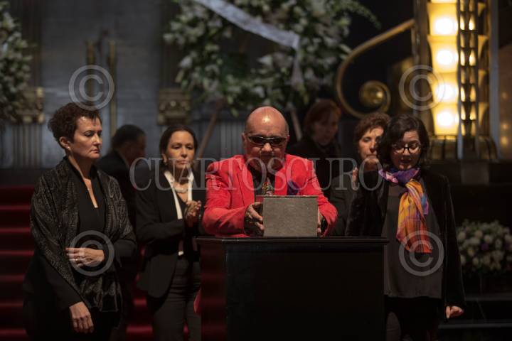 CIUDAD DE MÉXICO, 16NOVIEMBRE2018.- Se rindió homenaje al escritor mexicano Fernando del Paso en Bellas Artes por parte de familiares, amigos y autoridades del sector cultural, entre aplausos su viuda Socorro e hijos Alejandro y Paulina montaron la primera guardia de honor acompañados de la secretaria de Cultura María Cristina García Cepeda y la titular del Instituto Nacional de Bellas Artes (INBA) Lidia Camacho. FOTO: ILSE HUESCA /CUARTOSCURO.COM