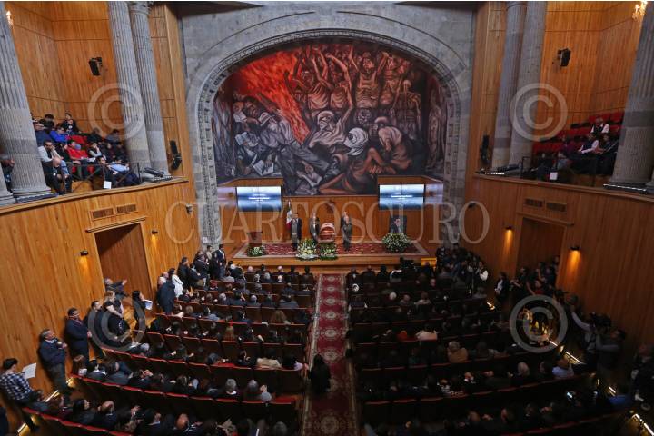 GUADALAJARA, JALISCO, 15NOVIEMBRE2018.- Hoy en el Paraninfo Enrique Díaz de León de la Universidad de Guadalajara (UdeG), se llevo a cabo un homenaje de cuerpo presente al escritor Mexicano Premio Cervantes, Fernando del Paso. FOTO: FERNANDO CARRANZA GARCIA /CUARTOSCURO.COM