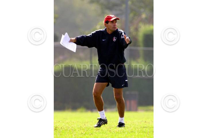 Fernando Quirarte, director técnico del Atlas, durante el entrenamiento en sus instalaciones, previo al próximo encuentro contra el Pachuca este domingo dentro de la jornada 17. FOTO: Victor Straffon/CUARTOSCURO.COM