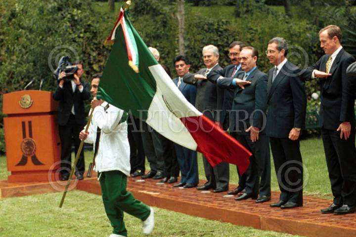 El primer mandatario, Ernesto Zedillo, abanderó a la delegación mexicana que participara en los juegos olímpicos de Sidney 2000. FOTO: Eduardo Loza/CUARTOSCURO.COM