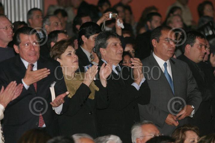MEXICO, D.F., 24ENERO2006.- Víctor Hugo Rascón, Sari Bermúdez, directora de CONACULTA, Juan Ferrara, actor, Saúl Juárez, director del INBA, durante el homenaje postumo en el Palacio de Bellas Artesa dona Ofelia Guilmain. FOTO: Moisés Pablo/CUARTOSCURO.COM