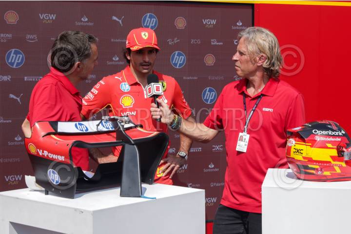 CIUDAD DE MÉXICO, 24OCTUBRE2024.- Carlos Sainz, piloto de Ferrari, es entrevistado durante el inicio de actividades de la Fórmula 1 Gran Premio de la Ciudad de México 2024, en el Autódromo Hermanos Rodriguez. FOTO: MOISES PABLO/CUARTOSCURO.COM