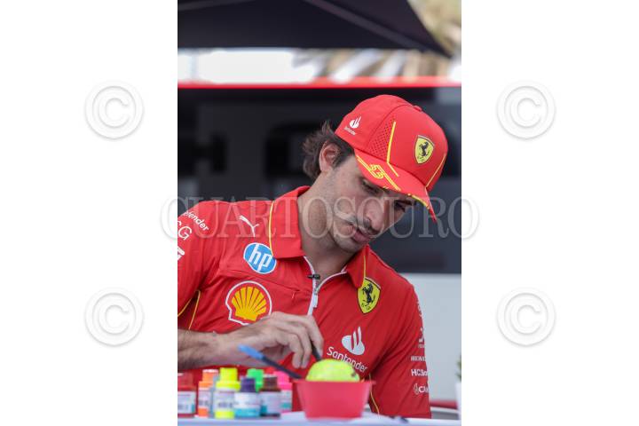 CIUDAD DE MÉXICO, 24OCTUBRE2024.- Carlos Sainz, piloto de Ferrari, pinta una calaverita durante el inicio de actividades de la Fórmula 1 Gran Premio de la Ciudad de México 2024, en el Autódromo Hermanos Rodriguez. FOTO: MOISES PABLO/CUARTOSCURO.COM