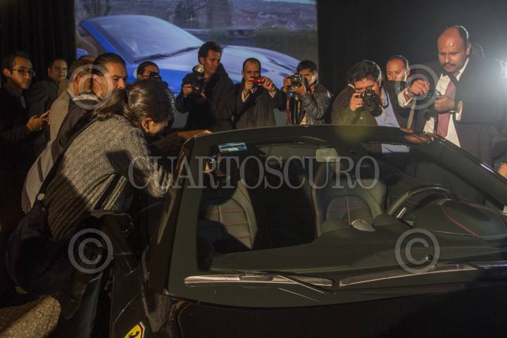 MÉXICO, D.F., 22ENERO2015.- El nuevo modelo de Ferrari “California T”, en el Museo Tamayo Arte Contemporáneo. FOTO: ISAAC ESQUIVEL /CUARTOSCURO.COM