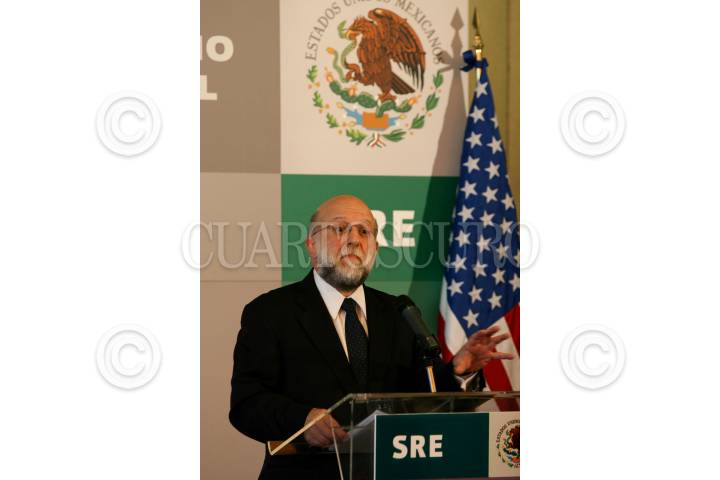 MÉXICO D.F., 07MAYO2009.- Carlos Rico Ferrat, Subsecretario para America del Norte de la Secretaria de Relaciones Exteriores, encabezo la sencilla ceremonia con la cual se agradeció la cooperación de los Estados Unidos durante la emergencia por la presencia del virus de la Influenza Humana (AH1N1) en nuestro país, el subsecretario fue acompañado por Mauricio Hernández Ávila, Subsecretario de Prevención y Promoción de la Salud y de Leslie Basset, Encargada de Negocios de la embajada de los Estados unidos, esta ceremonia se realizó en las instalaciones de la Secretaria de Relaciones Exteriores. FOTO: GUILLERMO PEREA/CUARTOSCURO.COM