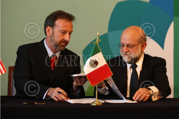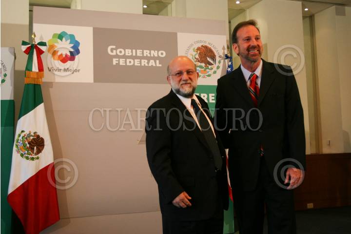 MÉXICO D.F., 03DICIEMBRE2008.- Carlos Rico Ferrat, Subsecretario de Relaciones Exteriores y Antonio Garza, Embajador de los Estados Unidos, realizaron la firma de acuerdos sobre la Iniciativa Mérida, esto en las instalaciones de la misma secretaria. FOTO: GUILLERMO PEREA/CUARTOSCURO.COM