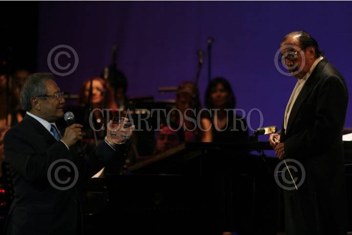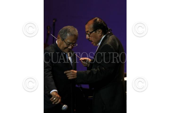 MÉXICO, D.F., 22AGOSTO2010.- El maestro Armando Manzanero, en compañía de Jesús "Chucho" Ferrer, durante el homenaje que se le realizo a el maestro Ferrer en el Teatro de la Ciudad. FOTO: ENRIQUE ORDÓÑEZ/CUARTOSCURO.COM