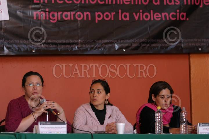 MÉXICO, D.F. 02DICIEMBRE2008.- Maria Concepción Martínez Medina Directora de Atencion y prevención de la violencia Familiar, Monica Godoy Ferro Coordinadora de Atención y Servicios sin fronteras, durante la mesa redonda realizada en el museo de culturas populares, donde el tema principal fue la violencia hacia las mujeres. FOTO: SÁSHENKA GUTIÉRREZ/CUARTOSCURO.COM