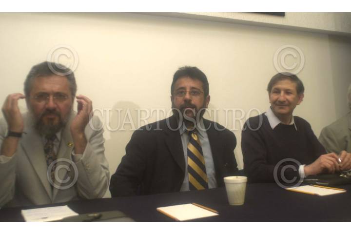 MEXDF13MAYO2004.- Los investigadores del Instituto de Astronomia, Rodolfo González, Armando Arellano Ferro y José de Jesús Franco y Julio Herrera Velazquez, informaron en conferencia de prensa, explicaron que los objetos circulares que la fuerza Aérea mexicana encontraron enlas nubes se tratan del fenomeno de las centellas. FOTO: Eunice Adorno/CUARTOSCURO.COM