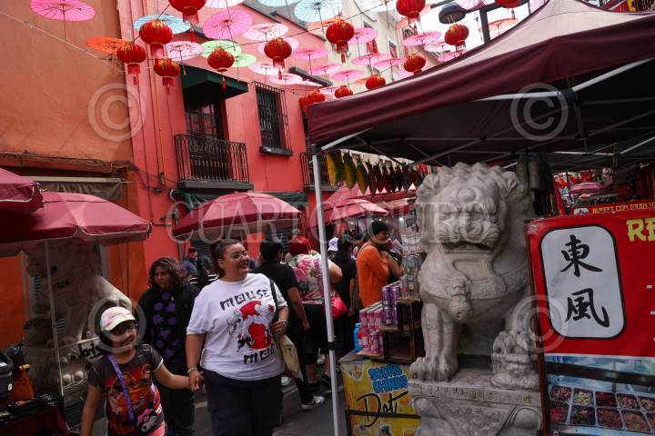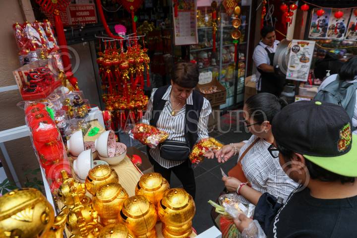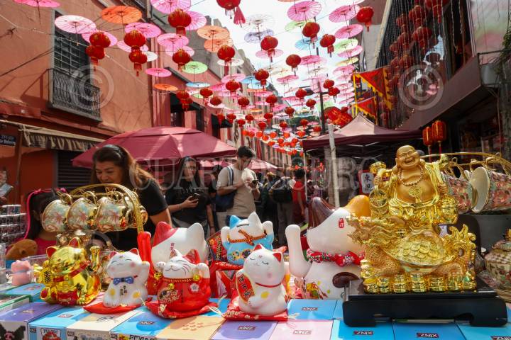 CIUDAD DE MÉXICO, 19ENERO2025.- Los comercios del Barrio Chino, ubicado en la calle de Dolores en el Centro, se encuentra listo para celebrar el Año Nuevo Chino, que este año festejarán a la serpiente de madera. Los puestos de dumplings, souvenirs y comida se encuentran al cien para recibir a los miles de visitantes que acuden a este festejo, que también incluye danza y música. FOTO: MOISÉS PABLO/CUARTOSCURO.COM
