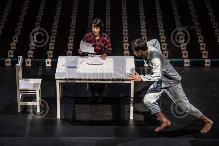 GUANAJUATO, GUANAJUATO, 19OCTUBRE2018.- El proyecto nipón Mikuni Yanaihara, presentó su obra "Un día tranquilo" dentro de la oferta teatral de la edición XLVI del Festival Internacional Cervantino. La obra se centra en un matrimonio que discuten sobre una situación apocalíptica, después de la muerte de más de cinco mil personas provocado por un sismo en Japón en el 2011. FOTO: MARIO JASSO /CUARTOSCURO.COM