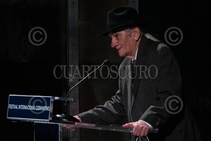 GUANAJUATO, GUANAJUATO, 17OCTUBRE2018.- Gabino Palomares, cantautor y activista social mexicano, durante su presentación en el Auditorio General de la Universidad de Guanajuato, en el marco de la celebración de la edición XLVI del Festival Internacional Cervantino. Gabino Palomares tiene una amplia trayectoria dentro de la canción latinoamericana, teniendo así una gran relevancia en los cantos de resistencia de las comunidades de América Latina en la segunda mitad del siglo XX. Su participación en esta ocasión, fue un concierto narrado con poemas y canciones referentes a los acontecimientos del movimiento estudiantil de1968. FOTO: MARIO JASSO /CUARTOSCURO.COM