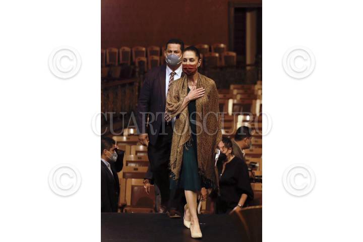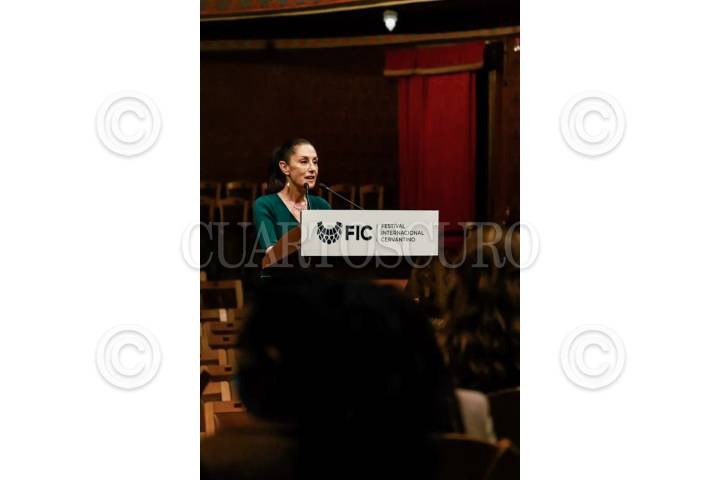 Claudia Sheinbaum durante la conferencia de prensa para anunciar que el 50 aniversario del Festival Cervantino tendrá como invitado a la Ciudad de México.