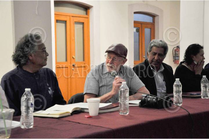 ZACATECAS, ZACATECAS, 02ABRIL2016.- Ayer por la noche, dentro del programa académico del 30 Festival Cultural Zacatecas 2016, se presentó el libro "El fino pincel de la luz; un acercamiento a la vida y obra de la poeta Dolores Castro Varela", el cual fue coordinado por la escritora Guadalupe Dávalos; comentaron el libro el escritor Francis Mestries, Patricia Reyes, y la periodista Alma Ríos Treto. Para finalizar su intervencion leyó el poema Vocerío, el cual dedicó a los 43 estudiantes desaparecidos de la Normal de Ayotzinapa. FOTO: CARLOS SEGURA /CUARTOSCURO.COM