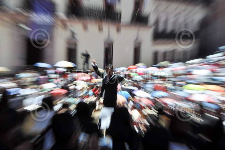 ZACATECAS, ZACATECAS, 02ABRIL2015.- Con la dirección de Salvador García y Ortega, se realizó el tradicional concierto de la Banda Sinfónica y Coro de Zacatecas, ante un público que abarrotó la Plaza de Armas del centro histórico. FOTO: CARLOS SEGURA /CUARTOSCURO.COM