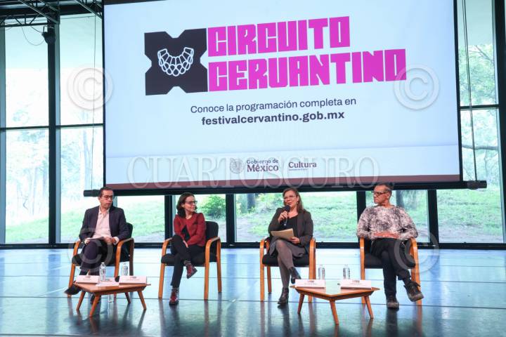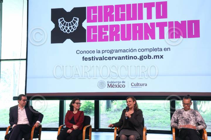 CIUDAD DE MÉXICO, 09SEPTIEMBRE2025.- Juan Ayala, secretario de Planeación y Programación de la Coordinación de Difusión Cultural de la UNAM; Valeria Palomino, directora general de Circuitos y Festivales; Haydeé Boetto, subdirectora general del INBAL, y Romain Greco, coordinador ejecutivo del Festival Internacional Cervantino, dieron detalles del festival que se realizará del 10 de octubre al 26 de octubre y que se llevará a cabo de manera paralela en escenarios de Guanajuato y Ciudad México. Los funcionarios compartieron parte de la programación del festival o "Circuito Cervantino", que en esta ocasión tendrá como invitados al estado de Veracruz y al Reino Unido. El encuentro con medios se llevó a cabo en el pabellón Escénico del Bosque de Chapultepec, este recinto también será sede del FIC 2025. FOTO: MOISÉS PABLO/CUARTOSCURO.COM