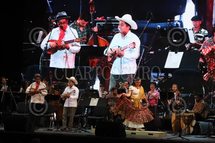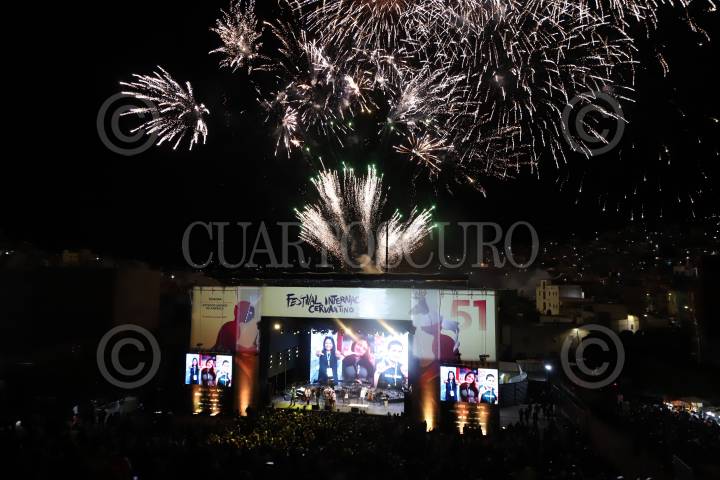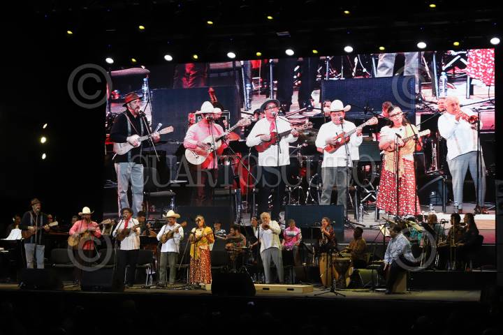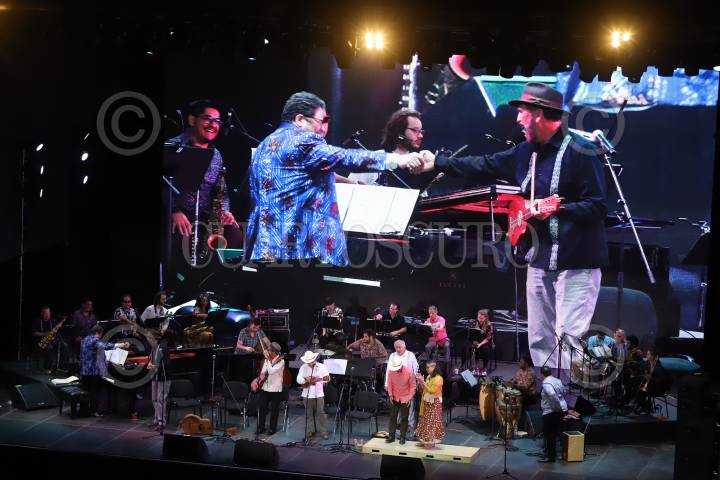 GUANAJUATO GUANAJUATO, GUANAJUATO, 29OCTUBRE2023.- Arturo O´Farrill and The Afro Latin Jazz Orchestra y el Colectivo Conga Patria Son Jarocho durante el espectáculo de clausura de la edición 51 del Festival Internacional Cervantino en la Alhóndiga de Granaditas. FOTO: EDGAR NEGRETE LIRA/CUARTOSCURO.COM