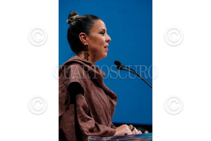 CIUDAD DE MÉXICO, 09SEPTIEMBRE2025.- Valeria Palomino, directora general de Circuitos y Festivales; durante la conferencia de prensa para dar detalles del Festival Internacional Cervantino 2025, que se realizará del 10 de octubre al 26 de octubre y que se llevará a cabo de manera paralela en escenarios de Guanajuato y Ciudad México. La funcionaria compartió parte de la programación del "Circuito Cervantino", que en esta ocasión tendrá como invitados al estado de Veracruz y al Reino Unido. El encuentro con medios se llevó a cabo en el pabellón Escénico del Bosque de Chapultepec, este recinto también será sede del FIC 2025. FOTO: MOISÉS PABLO/CUARTOSCURO.COM