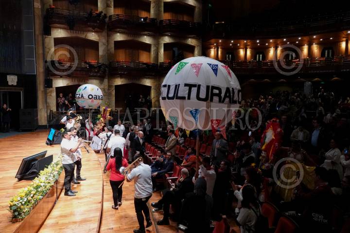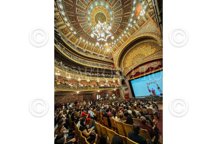 CIUDAD DE MÉXICO, 16JULIO2024.- Aspectos de la conferencia de prensa en el Palacio de Bellas Artes para dar a conocer detalles sobre la edición 52ª del FIC, así las actividades culturales y los invitados de este año que corresponden a Oaxaca y Brasil. FOTO: GALO CAÑAS/CUARTOSCURO.COM