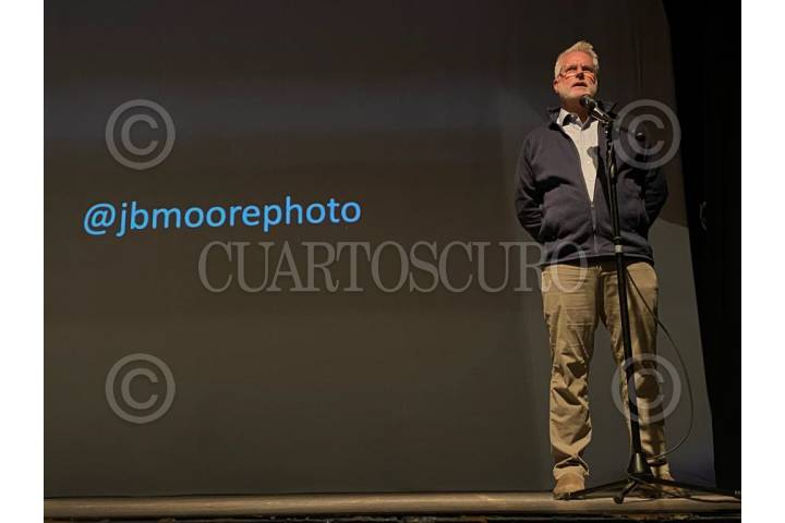 El fotógrafo norteameicano John Moore, ganador del Pulitzer, durante su charla de inauguración en el Festival Internacional de Fotografía de Arica