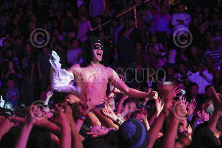 ZACATECAS, ZACATECAS, 26MARZO2013.- Con más de dos horas de retraso, se presentaron la noche de ayer en el Festival Cultural Zacatecas los grupos Fobia y Zoé. El público, a pesar del enojo y las rechiflas para las bandas, se mostró paciente y estuvo en el evento hasta que finalizara a la 1 de la mañana. FOTO: ALEJANDRO ORTEGA NERI /CUARTOSCURO.COM