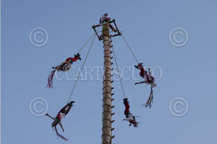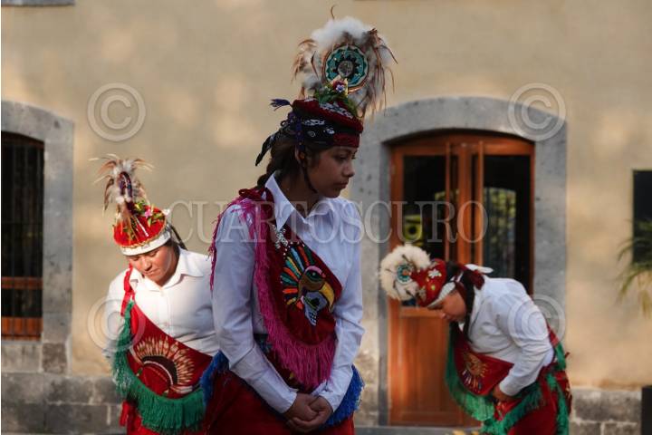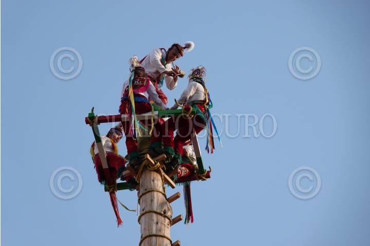 Voladoras de Papantla de Atempan, Puebla, realizaron la Ceremonia de Voladores durante el Festival de la Primavera en el Centro Cultural Los Pinos