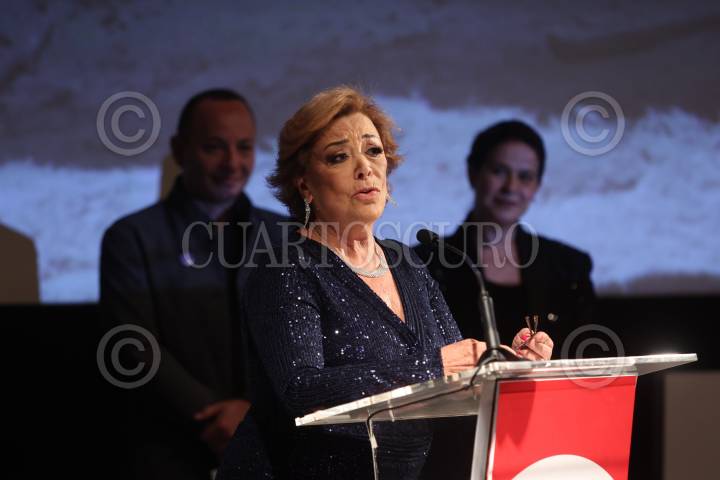 LEÓN, GUANAJUATO, 20JULIO2024. Silvia Pasquel durante el homenaje al director Arturo Ripstein por parte del Festival Internacional de Cine de Guanajuato (GIFF) en su edición número 27, en el Teatro Bicentenario. FOTO: EDGAR NEGRETE LIRA/CUARTOSCURO.COM