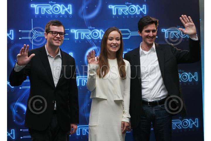 MÉXICO, D.F., 08DICIEMBRE2010.- El el coproductor Justin Spencer, la actriz Olivia Wilde y el director Joseph Kosinski posan para los fotógrafos durante su visita a México para promocionar la película "Tron: El legado". SOLO USO EDITORIAL FOTO: ISAAC ESQUIVEL/CUARTOSCURO.COM