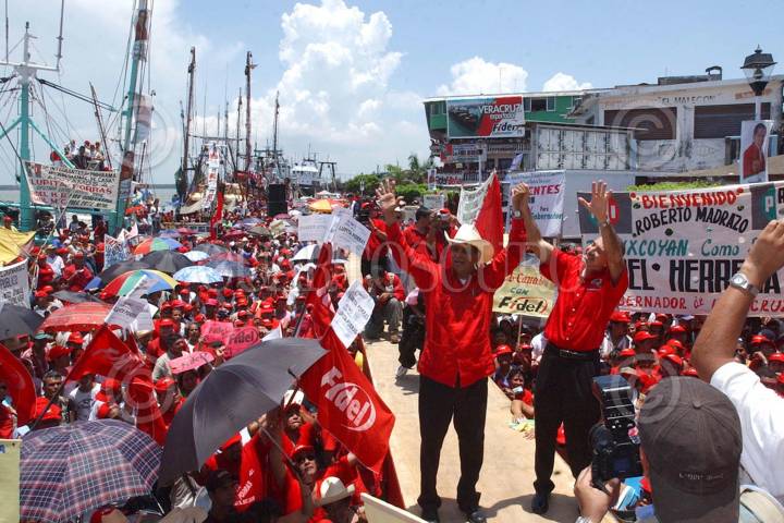 Veracruz, 04 JULIO 2004.- El candidato a la gubernatura del Estado Fidel Herrera y Roberto Madrazo, presidente nacional del PRI durante la gira en apoyo a los canditados a la alianza fidelidad por Veracruz. FOTO: Juan Flores/CUARTOSCURO.COM