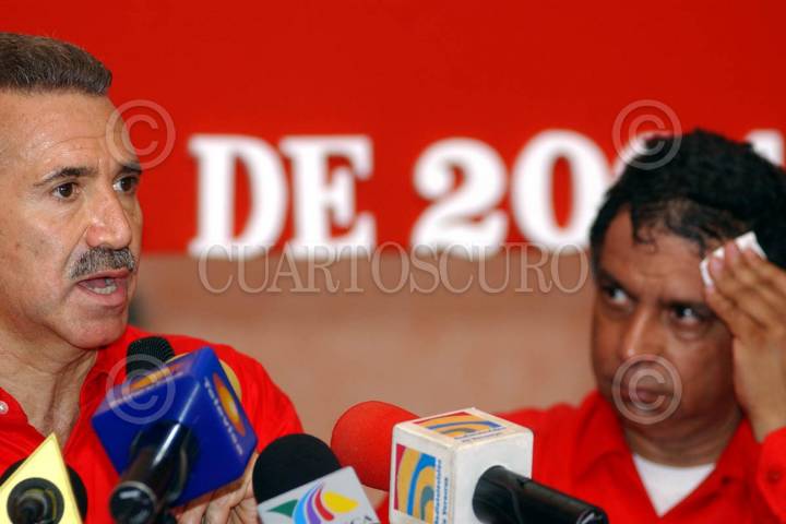 Veracruz, 04 JULIO 2004.- Roberto Madrazo, presidente nacional del PRI y Fidel Herrera candidato a la gubernatura del Estado en conferencia luego de la gira en apoyo a canditados a la alianza fidelidad por Veracruz. FOTO: Juan Flores/CUARTOSCURO.COM