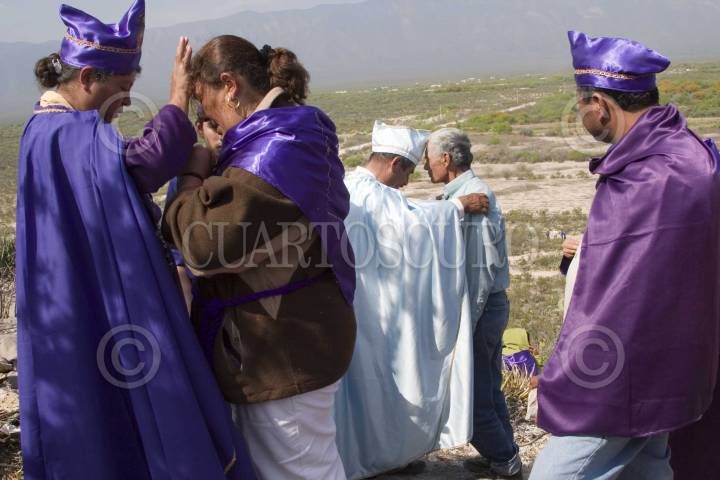 ESPINAZO NL.19MARZO2007.-NIÑO FIDENCIO. En el cerro de La Campana, desde la madrugada del día de hoy, decenas de Fidencistas llegaron de varios puntos del país y EEUU para recordar a el Niño Fidencio que curo de manera gratuita a hombres y mujeres de pocos recursos económicos en los años 20s y 30s del siglos pasado. Como cada año decenas de personas fueron atendidas por los llamados cajitas o materias quienes les atendieron de sus males y les realizaron un limpia. FOTO PEDRO VALTIERRA/CUARTOSCURO.COM