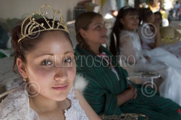 ESPINAZO NUEVO LEÒN.20MARZO2007.-NIÑO FIDENCIO.– Una Reina encabezó al grupo de fieles fidencistas que procedente de Ciudad Juárez llegó hasta este pueblo, ubicado en la frontera de Nuevo León y Coahuila para celebrar el Santo del niño milagroso que a finales de los años 20 y principios de los 30, del siglo pasado, sanaba a decenas de persona (operaba con vidrios y hacia hablar a los mudos, se dice) durante la celebración de las fiestas de San José, en honor del Niño Fidencio. FOTO: PEDRO VALTIERRA/CUARTOSCURO.COM
