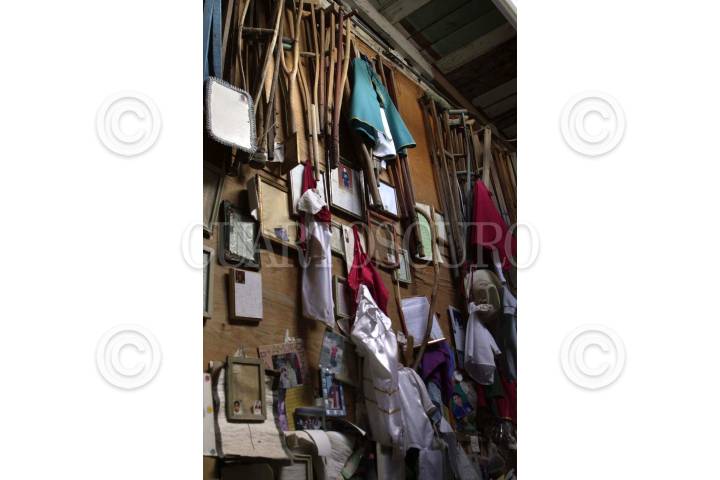 ESPINAZO, NUEVO LEON.19.Sept.2004.-NIÑO FIDENCIO. Muletas, pedazos de cabello y fotos, son el testimonio de los miles de fieles seguidores de La Iglesia Fidencista, que lo visitan todo año, para agradecerle los favores recibidos. Fidencio, que murió en 1938, es uno de los hombres más venerados en todo el país. Los visitantes además de pagar o pedir un milagro aprovechan para bañarse en el charco y untarse barro (que tiene poderes curativos y poderosos, dicen). FOTO PEDRO VALTIERRA/CUARTOSCURO.COM