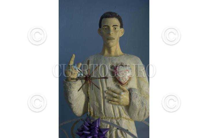 ESPINAZO, NUEVO LEON.19.Sept.2004.-FOTOHISTORIA.NIÑO FIDENCIO. En la iglesia donde esta sepultado, una de las esculturas de José de Jesús Fidencio Cintora Constantino, mejor conocido como el Niño Fidencio, que murió en 1938 y en los años 20 y 30 del siglo pasado, curó y sano a decenas de enfermos, incluyendo al presidente Plutarco Elías Calles, que lo visitaban de todo el país y del extranjero. Murió en 1938. FOTO PEDRO VALTIERRA/CUARTOSCURO.COM