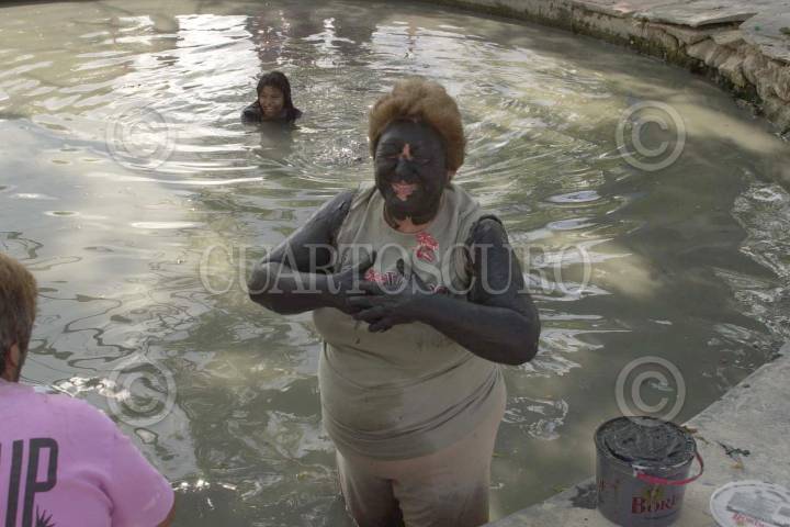 ESPINAZO, MPIO. MINA,NUEVO LEON.19OCTUBRE2006.- Miles de Fidencistas se bañan en el charquito cuyas aguas tienen poderes que curan muchas enfermedades incluyendo las propias del corazòn. En el 68 aniversario decenas de miles seguidores llegan procedentes del país y la unión americana. José de Jesús Fidencio Constantino Síntora que nacio en Yuriria, Guanajuato el 17 de octubre de 1898 llego a este pueblo el 1923 y desde entonces mostro poderes sobrenaturales para curar enfermedades grtuitamente. FOTO PEDRO VALTIERRA/CUARTOSCURO.COM