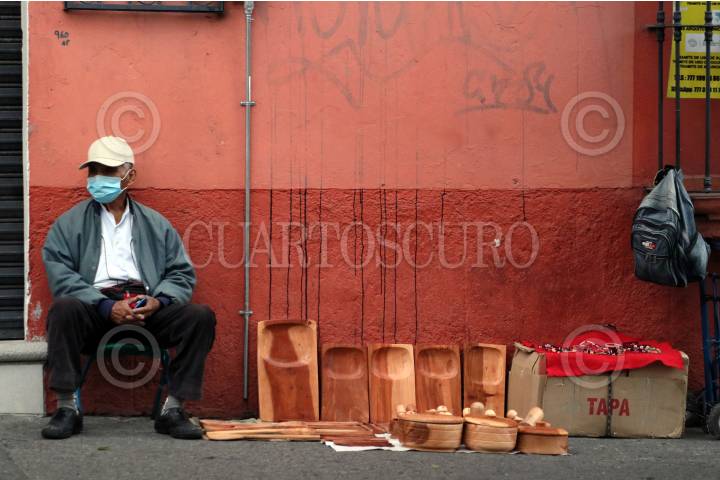 Un vendedor de artesanías para la cocina elaboradas con palo fierro ofrece su mercancía en una calle de la ciudad.