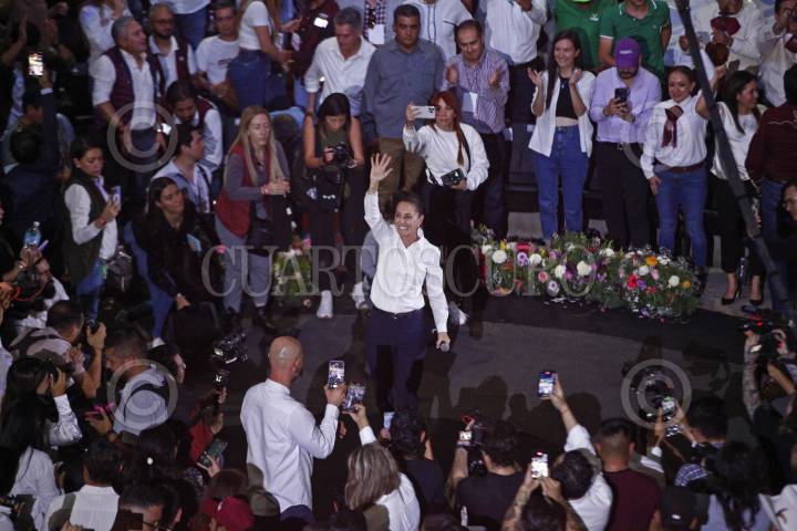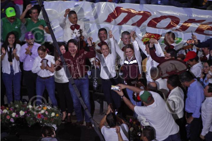 GUADALAJARA, JALISCO, 18NOVIEMBRE2023.- Este medio día la candidata a la Presidencia de la Republica, Claudia Sheinbaum, estuvo de visita por la ciudad, en donde encabezo un mitin que se llevo a cabo en las instalaciones del Palenque Fiestas de Octubre, en donde estuvo acompañada por figuras políticas nacionales y del estado. FOTO: FERNANDO CARANZA GARCIA / CUARTOSCURO.COM