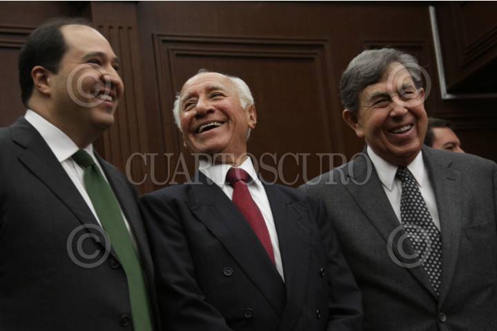 MORELIA, MICHOACÁN, 15FEBRERO2012.- Los exgobernadores Lázaro Cárdenas Batel, Ausencio Chávez y Cuauhtemoc Cárdenas Solórzano acudieron a la toma de protesta del gobernador Fausto Vallejo. FOTO: IVÁN STEPHENS/CUARTOSCURO.COM