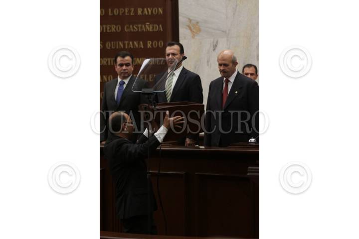 MORELIA, MICHOACÁN, 15FEBRERO2012.- Fausto Vallejo Figueroa tomó protesta como gobernador del estado en el congreso estatal. FOTO: IVÁN STEPHENS/CUARTOSCURO.COM
