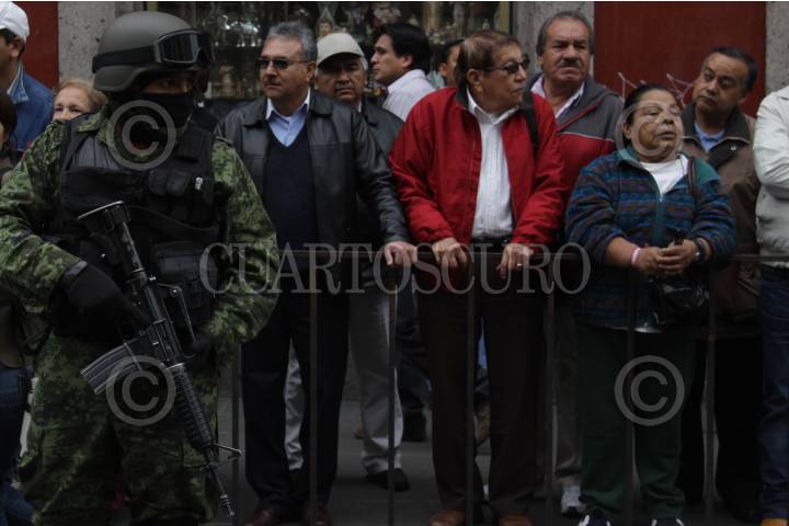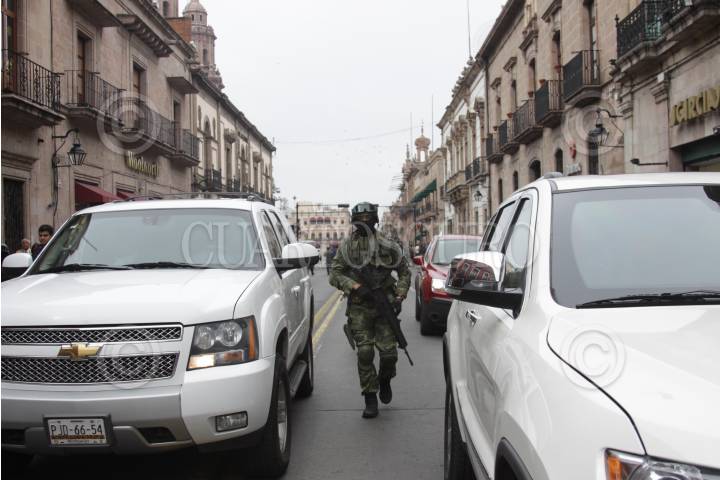 MORELIA, MICHOACÁN, 15FEBRERO2012.- Personal del Ejército Mexicano y la Marina Armada de México resguardaron el Congreso del Estado durante la toma de protesta de Fausto Vallejo como gobernador. FOTO: IVÁN STEPHENS/CUARTOSCURO.COM