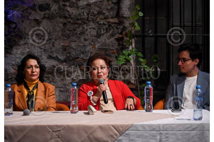 CIUDAD DE MÉXICO, 03JULIO2024.- La conductora y actriz Fernanda Tapia, la hija del compositor Chava Flores, María Eugenia Flores, y el Director de la Filarmónica de las Artes, Enrique Abraham Velez Godoy, durante una conferencia de prensa en el Antiguo Palacio de Coyoacán, en la cual dieron a conocer los pormenores del showcase “Flores para Chava”, un concierto escénico, el cual tendrá lugar el sábado 20 de julio en el Centro Cultural Ollin Yoliztli. FOTO: PEDRO ANZA /CUARTOSCURO.COM