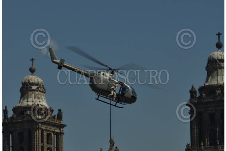 MÉXICO, D.F., 31MARZO2015.- Nuevamente el zócalo capitalino fue el escenario para la filmación de una pelea entre el doble de James Bond y el villano. Dos helicópteros realizan diversas tomas en el aire. FOTO: ADOLFO VLADIMIR /CUARTOSCURO.COM