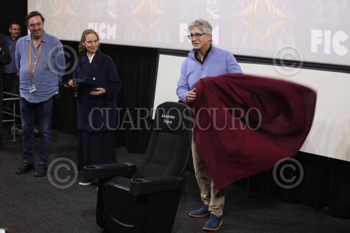 MORELIA, MICHOACÁN, 20OCTUBRE2024. Entrega de la Medalla de la Filmoteca de la UNAM y develación de butaca a Alexander Payne, como parte de las actividades del 22° Festival Internacional de Cine de Morelia. FOTO: EDGAR NEGRETE LIRA/CUARTOSCURO.COM