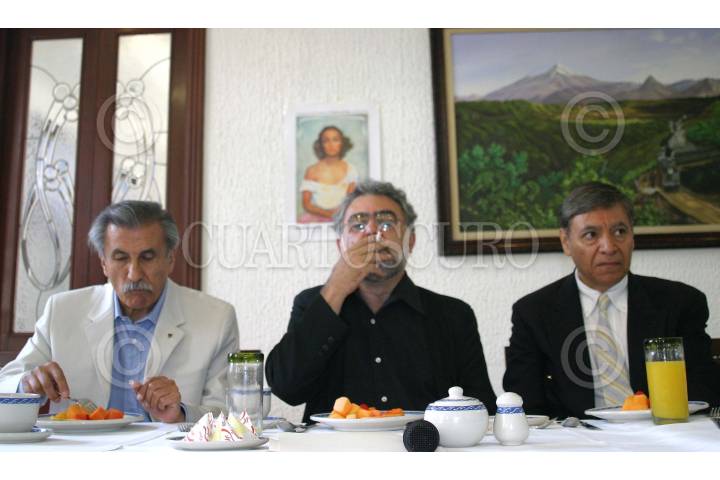 MEXDF28JULIO2004.- David Ramón, investigador de la UNAM, Iván Trujillo, director de la Filmoteca de la UNAM y Francisco Gaytan, subdirector de la Filmoteca durante la conferencia de prensa en donde anunciaron un homenaje a Dolores del Río. FOTO: Sandra Perdomo/CUARTOSCURO.COM