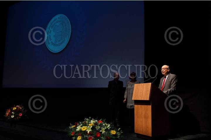 CIUDAD DE MÉXICO, 26ENERO2017.- Alejandro Pelayo, director de la Cineteca Nacional, recibió a nombre de ésta la medalla Filmoteca UNAM, de manos de Jorge Volpi, titular de Difusión Cultural de la Máxima Casa de Estudios, en una ceremonia realizada en el Centro Cultural Universitario. FOTO: ISAAC ESQUIVEL /CUARTOSCURO.COM
