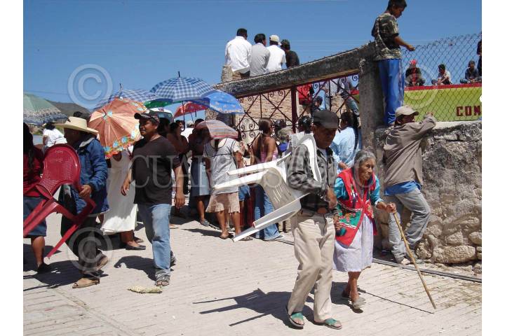 CARRIZALILLO, GUERRERO 17 FEBRERO 2007.- Ejidatarios que mantienen un bloqueo desde hace mas de 37 dias en la entrada a la mina El Bermejal y Los Filos durante la asamblea que fue convocada por el presidente de bienes comunales de dicho ejido Fernando Peña Celso la cual se realizo en la comisaria municipal de dicha comunidad donde se trato el cambio del comisariado de bienes comunales asi como el bloqueo que se mantiene a la entrada a las minas que pertenecen a la compañia Luismin. En la imagen habitantes del lugar observan la asamblea desde afuera debido a que no les fue permitida la entrada en la cual solo hubo participacion de ejidatarios FOTO: OSCAR ALVARADO/CUARTOSCURO.COM