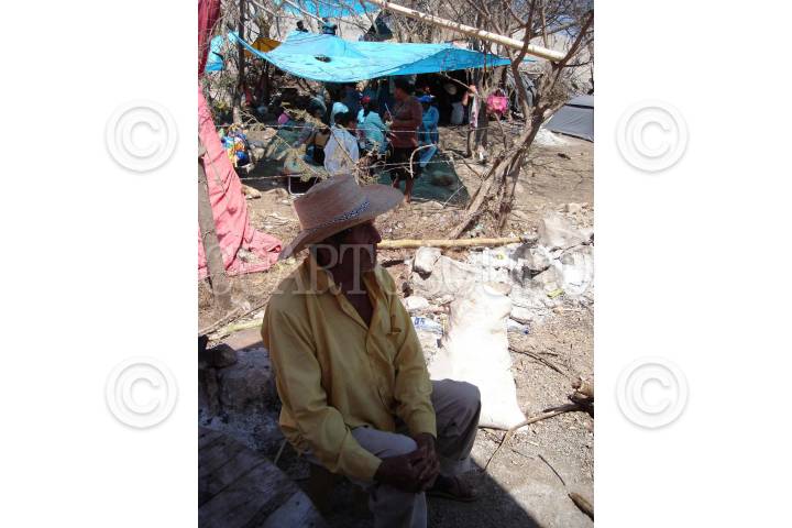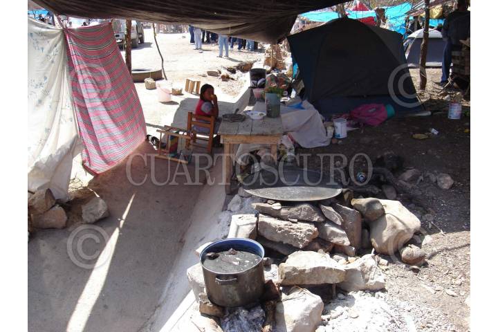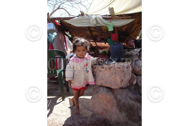 CARRIZALILLO GUERRERO23FEBRERO2007.- Una nña camina descalza, por el campamento que mantienen ejidatarios de la comunidad de Carrizalillo en la entrada a la mina "Los Filos" de la compañia minera Luismin, desde hace mas de un mes, el cual podria levantarse este sabado al llegar a un arreglo con la empresa. FOTO: OSCAR LAVARADO/CUARTOSCORO.COM
